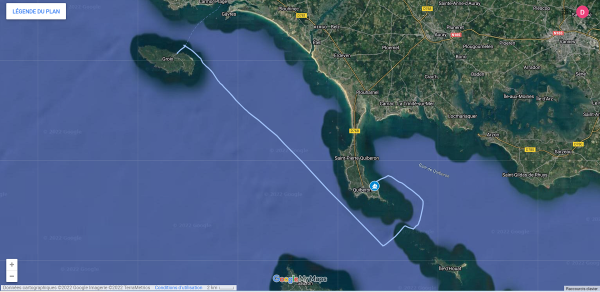 En route pour Belle-Île en Mer. Didier a repéré deux possibilités de mouillages où nous serions bien protégés des vents du quart nord-est pour y mouiller cette nuit, soit devant Port Herlin ou Port Kérel et sa plage du même nom, mais nous changerons nos plans sur un coup de cœur…